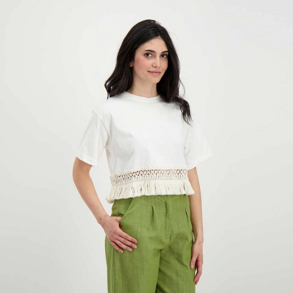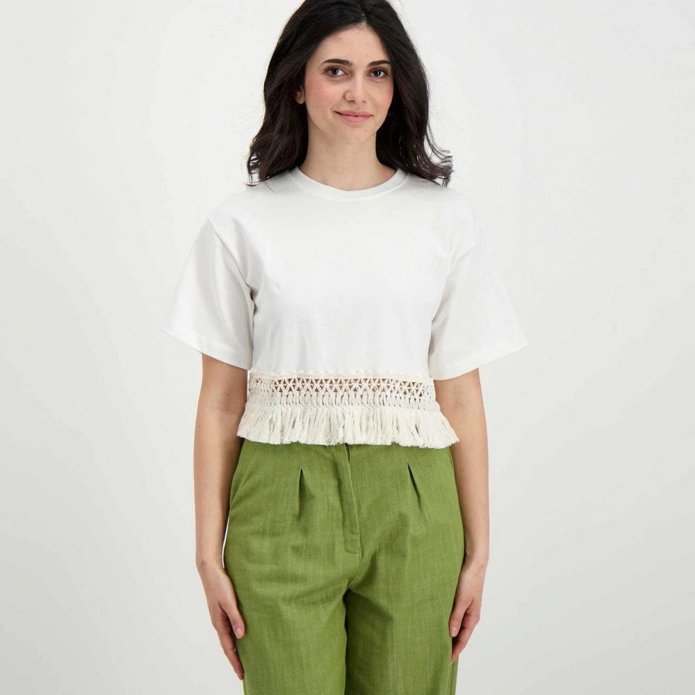 Akep KE11233 T Shirt Cropp Frange Donna Moda Donna