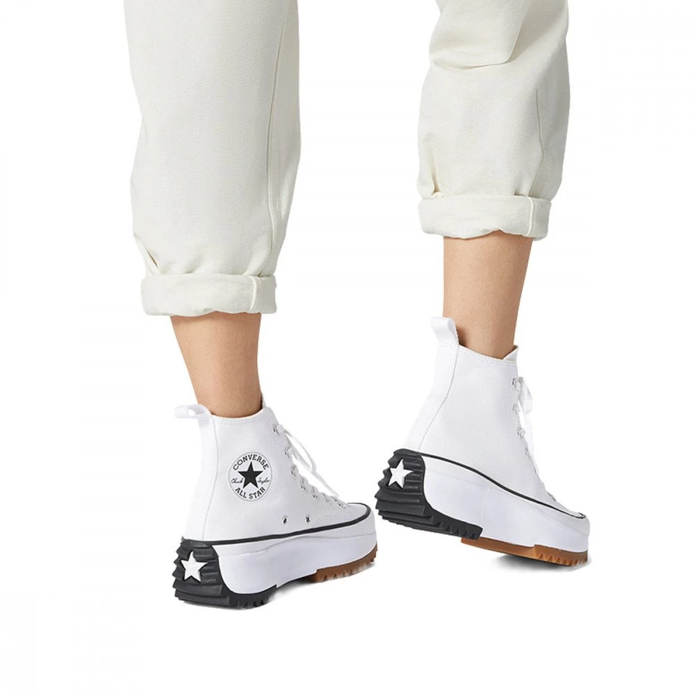 Le scarpe Converse Run Star Hike Hi da donna rivisitano l’iconico design delle Chuck Taylor con la suola platform sagomata, il battistrada bicolore e il tallone arrotondato per un tocco chunky e futuristico.