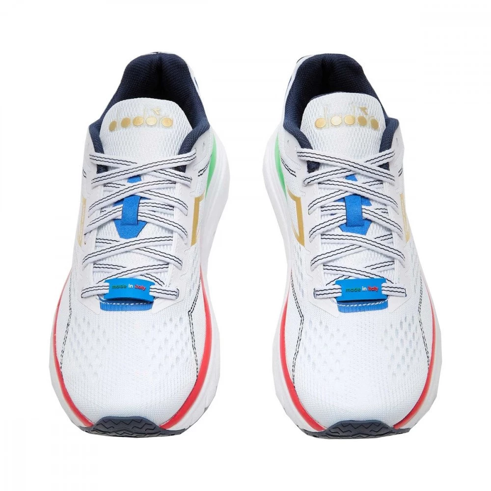Questo particolare modello firmato Diadora è studiato, sviluppato e prodotto in Italia, celebrando il Made in Italy non solo per tutto il processo produttivo che unisce artigianalità e cura dei dettagli ma anche per il tricolore lungo la tomaia.