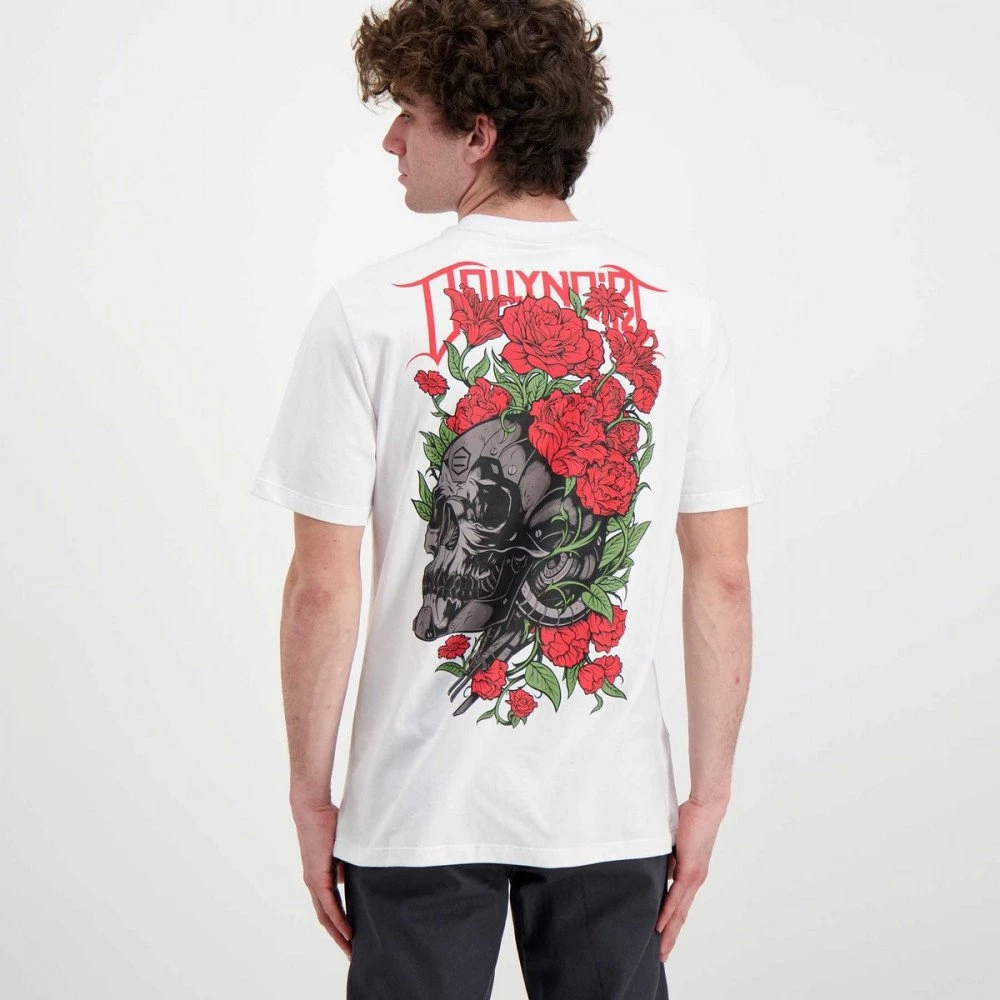 La t-shirt Dolly Noire Rossa Primavera da uomo unisce l’illustrazione di Antonio Bravo e la scritta logo di Ricro nell’ampia grafica sul retro, che rappresenta lo storico e intramontabile teschio, declinato in versione primaverile.