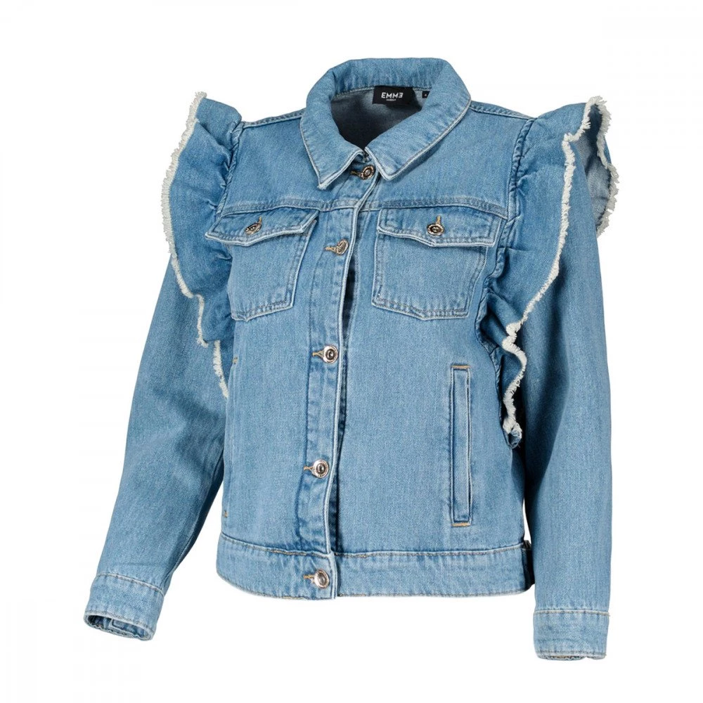 La giacca Emme Marella Livio da donna rivisita il classico giubbetto in jeans con i volant sfrangiati sulle spalle che incorniciano le maniche, per un tocco romantico e femminile. Il modello è parte della capsule collection EMME is for ME, progettata in collaborazione con Giorgia Palmas per la stagione Sping-Summer 22.