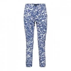 I pantaloni Emme Marella Fedra da donna, realizzati in raso stretch, conquistano per la fantasia floreale in stile provenzale, per un look romantico.