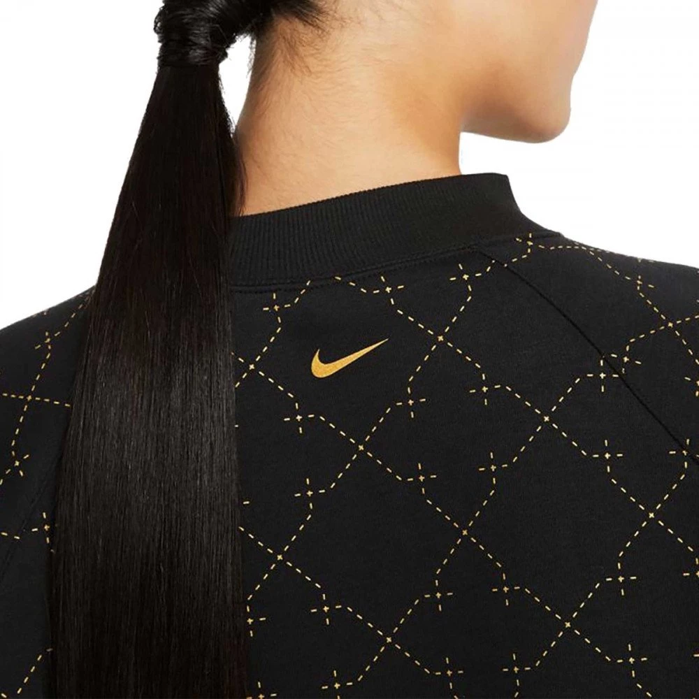 La felpa girocollo Nike Novelty da donna sfoggia un elegante design con stampa dorata metallizzata all-over con scritta Nike davanti e swoosh sulla schiena, per un look raffinato in stile trapuntato.