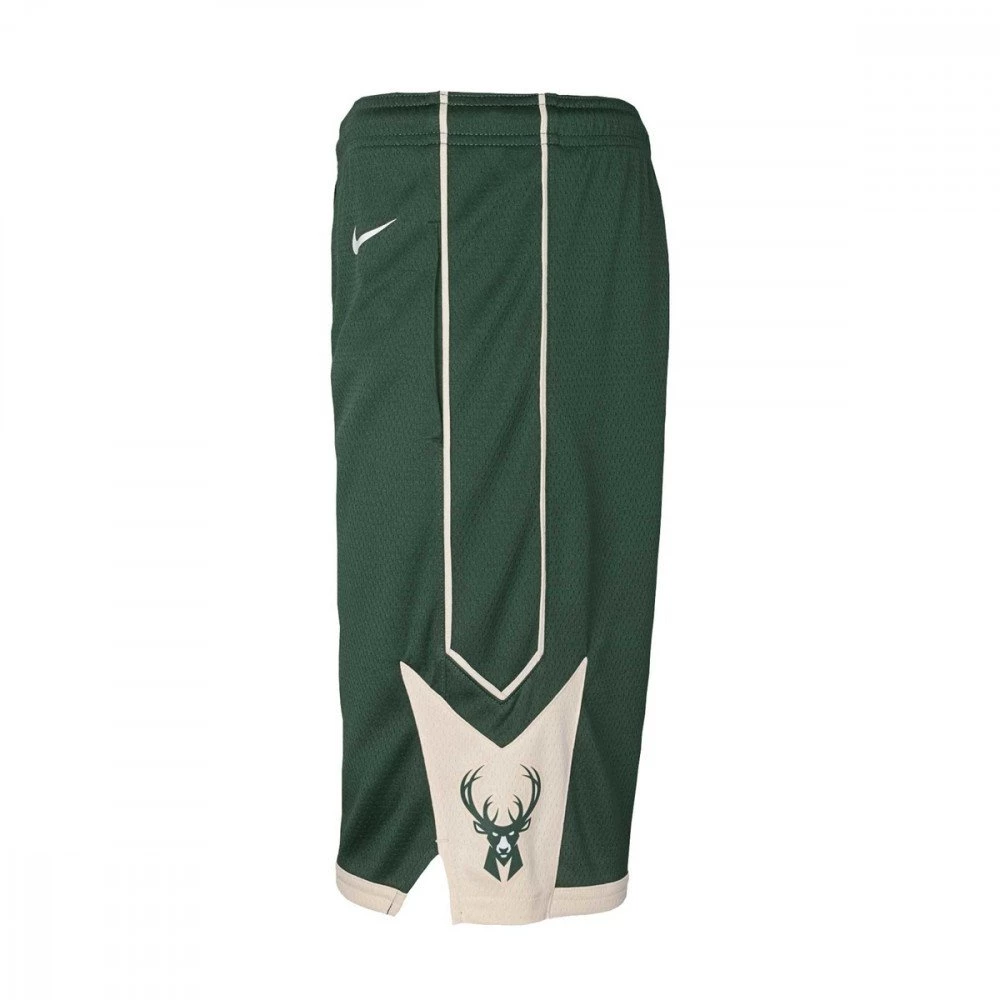 Gli short Nike Milwaukee Bucks da bambino combinano tessuto traspirante in maglia doppia e tasche laterali per un comfort ottimale insieme a dettagli di design che richiamano i colori della squadra in campo.