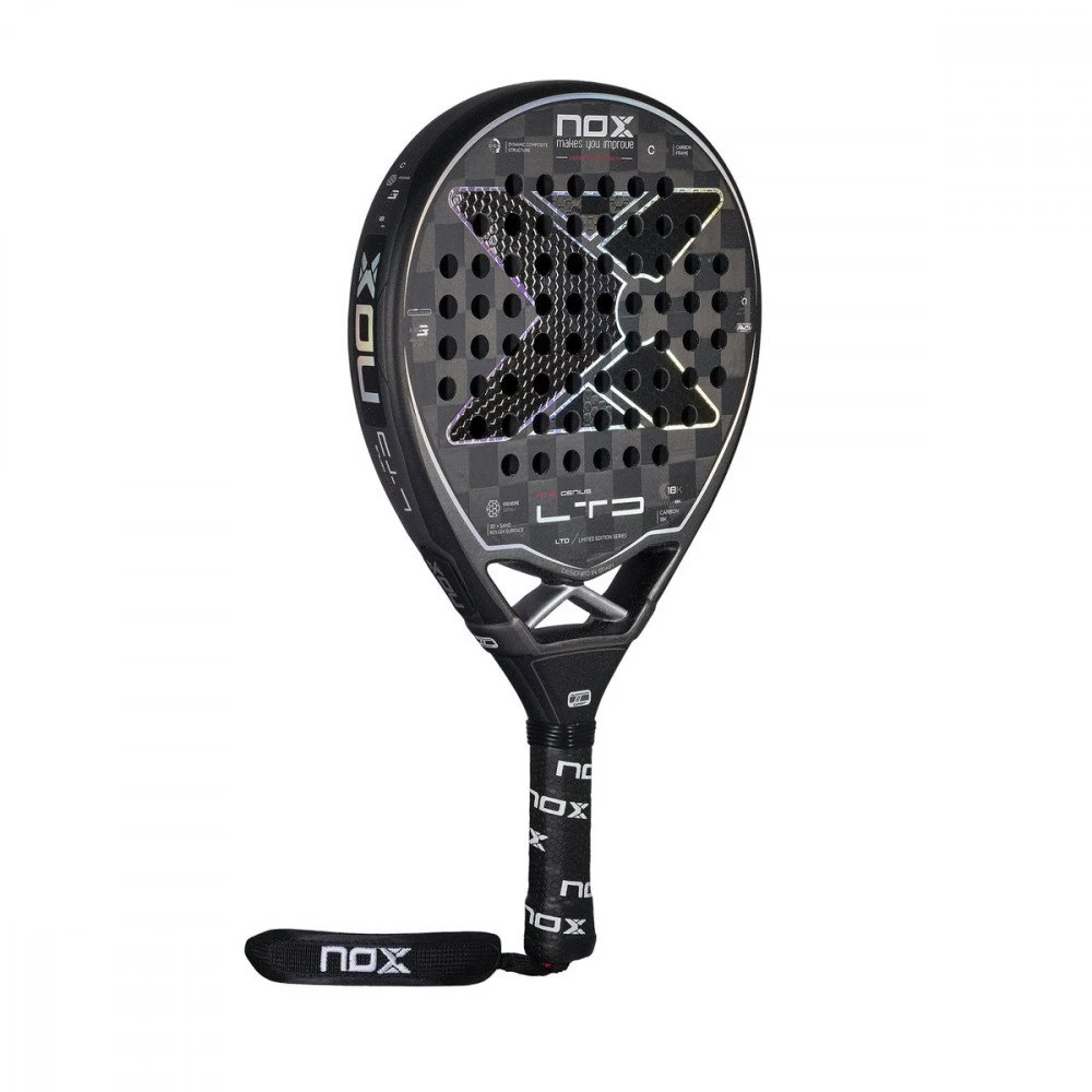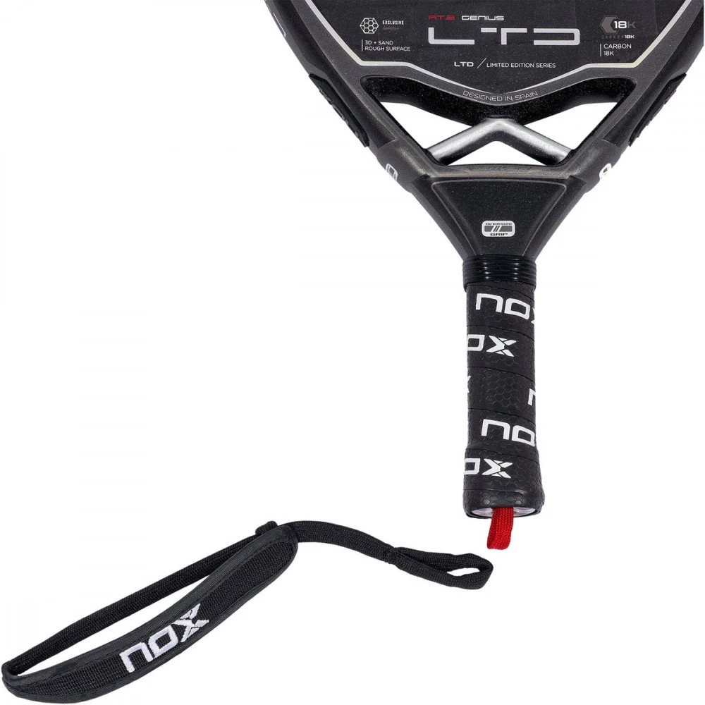 Il Pack da padel Nox AT.2 Genius Limited Edition 2022 contiene nel suo packaging un polsino e due cordini di sicurezza, ed è la scelta ideale per chi ricerca un prodotto top capace di offrire il perfetto mix di controllo e potenza.