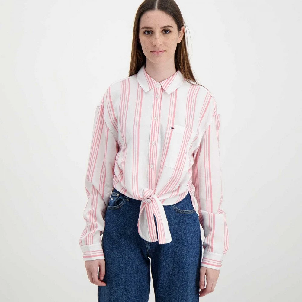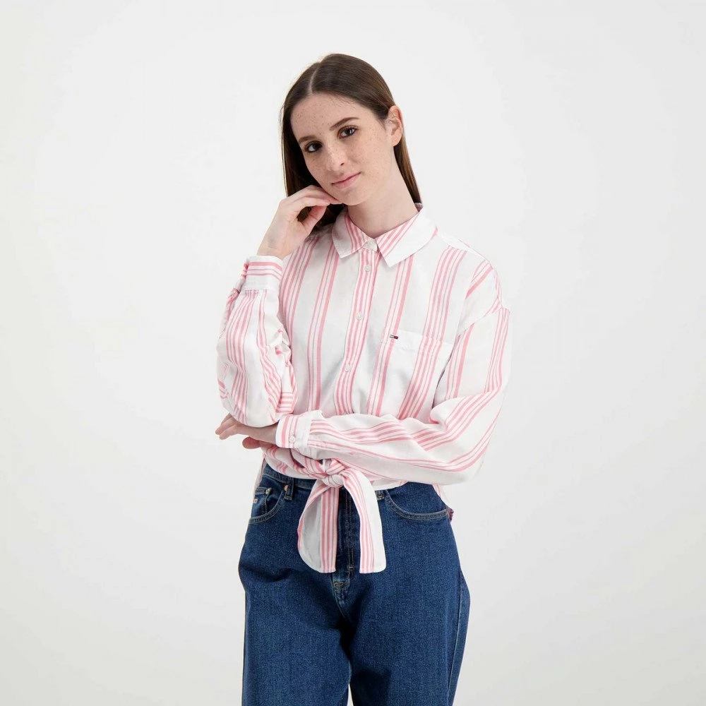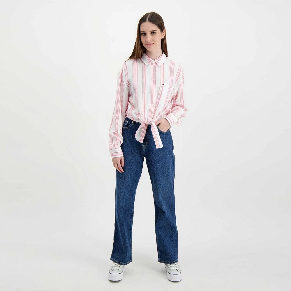 Tommy Jeans DW0DW12901 Camicia Tjw Front Tie Stripe Con Nodo Donna Moda Donna